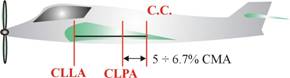 Cand C.G. se afla in punctul 1, aripa este stabila.